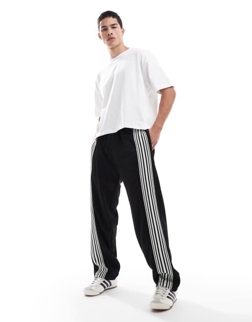 Pull&Bear – Czarne joggersy z szerokimi nogawkami i paskami