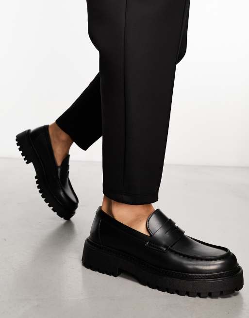 Pull&Bear – Czarne loafersy na grubej podeszwie