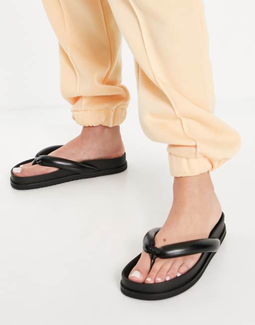 Pull&Bear – Czarne poduszkowe sandały japonki