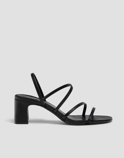 Pull&Bear – Czarne wiązane sandały na średnim obcasie