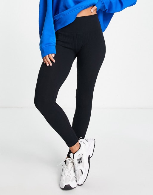 Pull&Bear – Czarny, bezszwowy zestaw prążkowany: top i legginsy