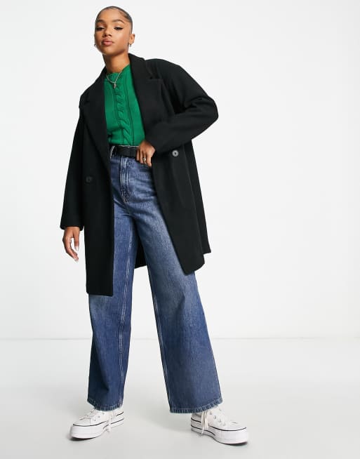 Pull&Bear – Czarny, dopasowany płaszcz o wydłużonym fasonie