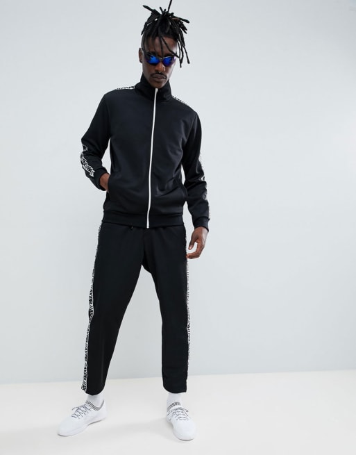 Pull&Bear – Czarny dres z logo na bocznym pasku – Dostępny tylko w ASOS