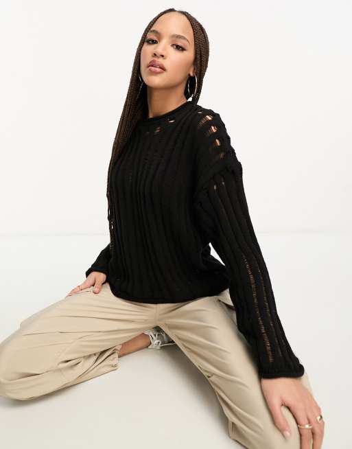 Pull&Bear – Czarny sweter oversize z dzianiny o ażurowym splocie