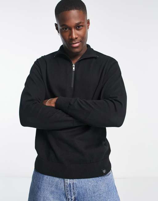 Pull&Bear – Czarny sweter z suwakiem pod szyją