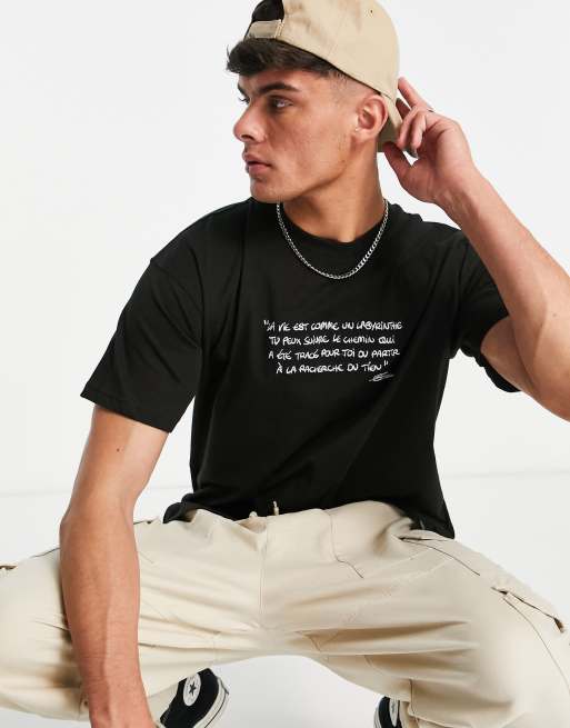 Pull&Bear – Czarny T-shirt z grafiką z napisem