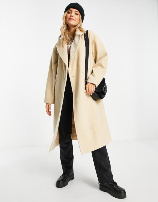 Pull&Bear – Dwurzędowy płaszcz oversize w kolorze ecru z klapami