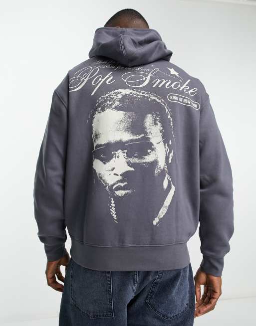 Pull&Bear – Grafitowa bluza z kapturem i nadrukiem Pop Smoke
