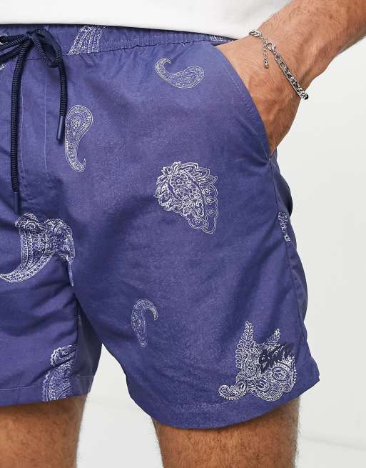 Pull&Bear – Granatowe szorty kąpielowe we wzór paisley