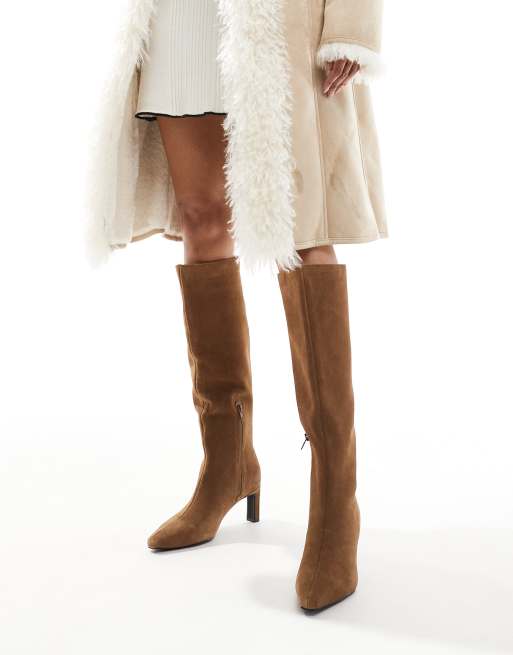 Pull&Bear – Jasnobrązowe zamszowe botki do kolan
