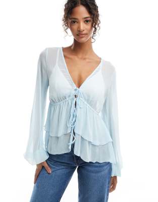 Pull&Bear – Jasnoniebieska bluzka z falbanką