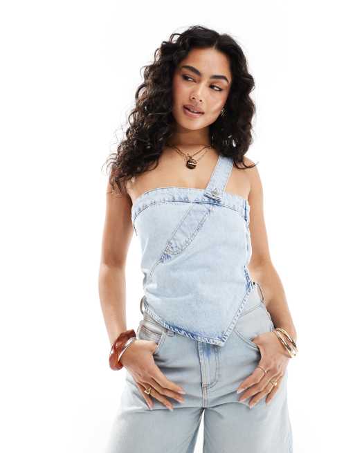Pull&Bear – Jasnoniebieski przerobiony top jeansowy
