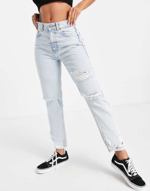 Pull&Bear – Jasnoniebieskie obcisłe jeansy z rozdarciami