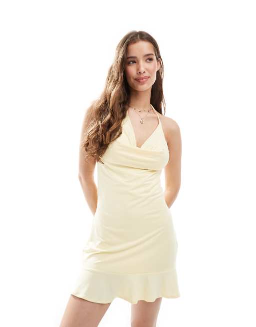 Pull&Bear – Jasnożółta sukienka mini z drapowanym dekoltem halter