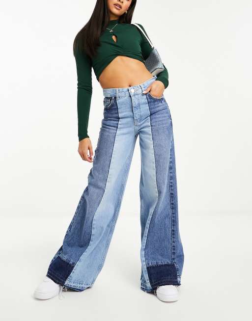 Pull&Bear – Jeansy z szerokimi nogawkami w dwóch odcieniach niebieskiego, część zestawu