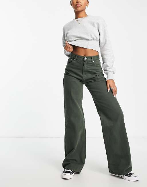 Pull&Bear – Jeansy z szerokimi nogawkami i podwyższonym stanem w kolorze khaki