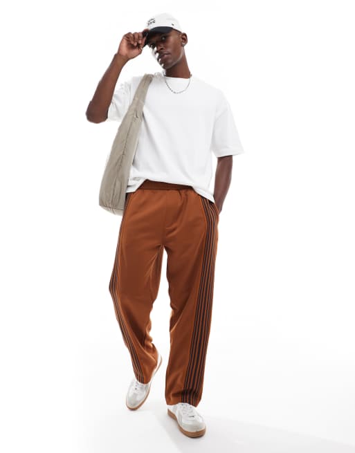 Pull&Bear – Joggersy z szerokimi nogawkami i paskami, w kolorze palonej pomarańczy