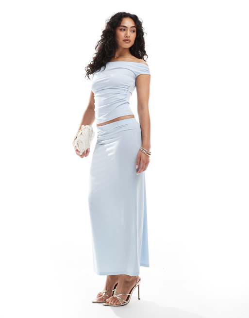 Pull&Bear – Niebieski zestaw z poliamidu: top z odsłoniętymi ramionami i spódnica