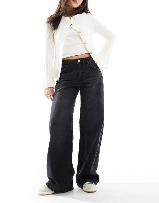 Pull&Bear – Obszerne jeansy oversize z szerokimi nogawkami w spranym czarnym kolorze