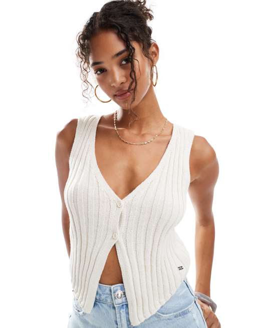 Pull&Bear – Podkoszulek o fasonie kamizelki z dzianiny w kolorze złamanej bieli
