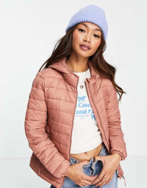 Pull&Bear – Różowa zapinana na zamek ocieplana kurtka z kapturem