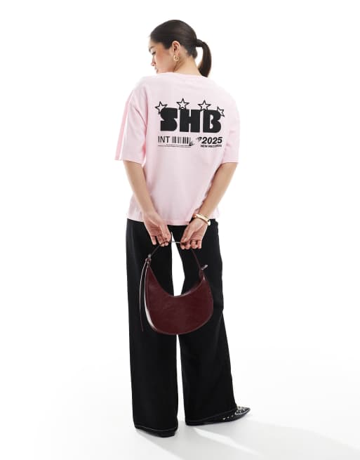 Pull&Bear – Różowy T-shirt z nadrukiem