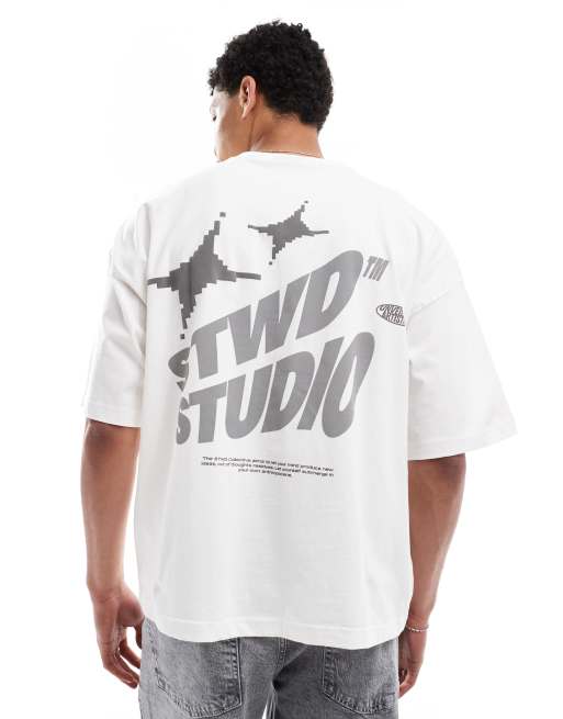Pull&Bear – STWD – Biały T-shirt z grafiką na plecach