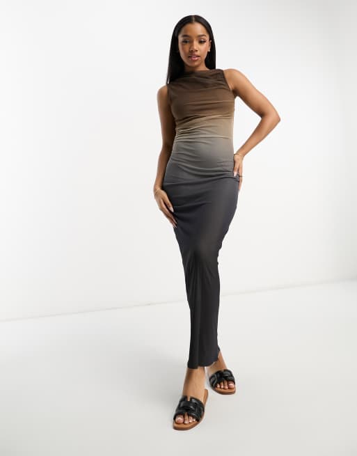 Pull&Bear – Sukienka maxi bez rękawów z brązowym efektem ombre