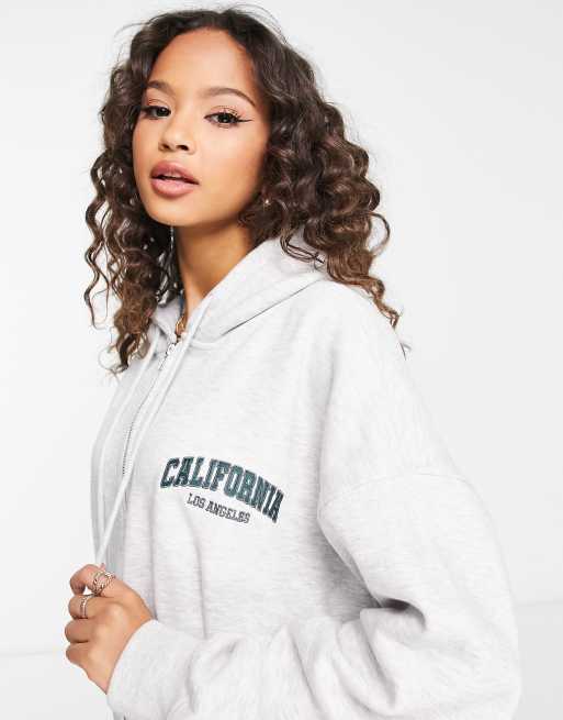 Pull&Bear – Szara zapinana na zamek bluza oversize z kapturem i napisem