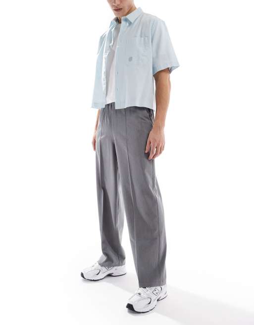 Pull&Bear – Szare dopasowane spodnie z szerokimi nogawkami