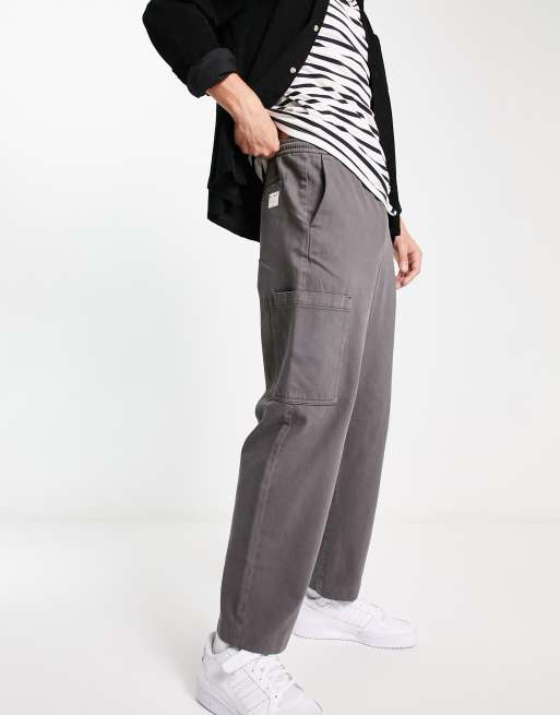 Pull&Bear – Szare spodnie bojówki z szerokimi nogawkami