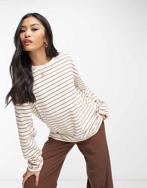 Pull&Bear – T-shirt z długimi rękawami w jasnobrązowe paski