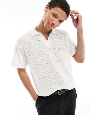 Pull&Bear – Teksturowana dzianinowa koszula w kolorze ecru