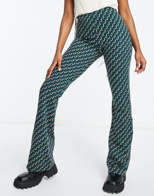 Pull&Bear – Top z wycięciem i dzwony – niebieski zestaw żakardowy