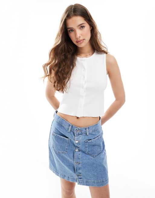 Pull&Bear – Zapinany na guziki biały podkoszulek bez rękawów