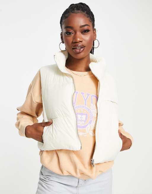 Pull&Bear – Zapinany na suwak ocieplany nylonowy bezrękawnik o krótkim fasonie w kolorze ecru
