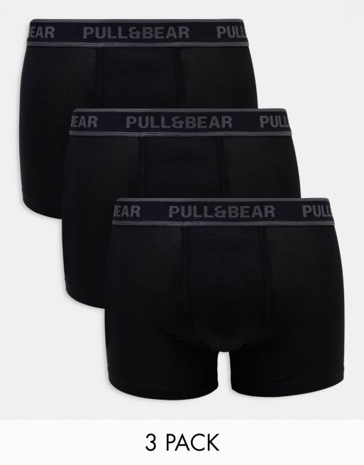 Pull&Bear – Zestaw 3 par czarnych bokserek z kontrastową szarą taśmą w talii