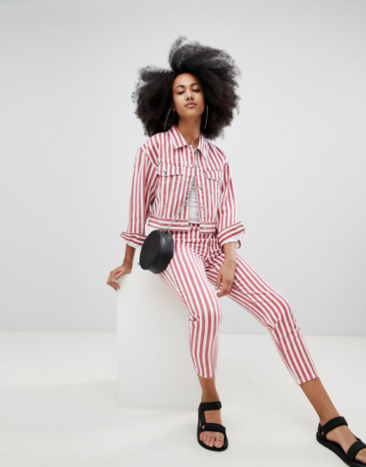 Pull&Bear – Zestaw: kurtka z denimu i jeansy typu mom w paski