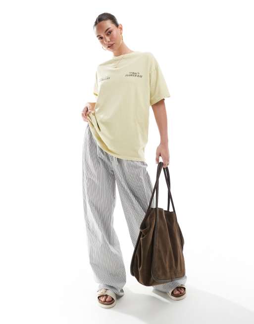Pull&Bear – Żółty T-shirt o pudełkowym kroju oversize