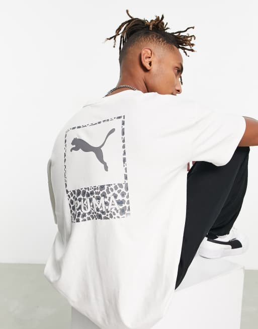 PUMA Classics – T-shirt w kolorze złamanej bieli z nadrukiem safari na plecach – Tylko w ASOS