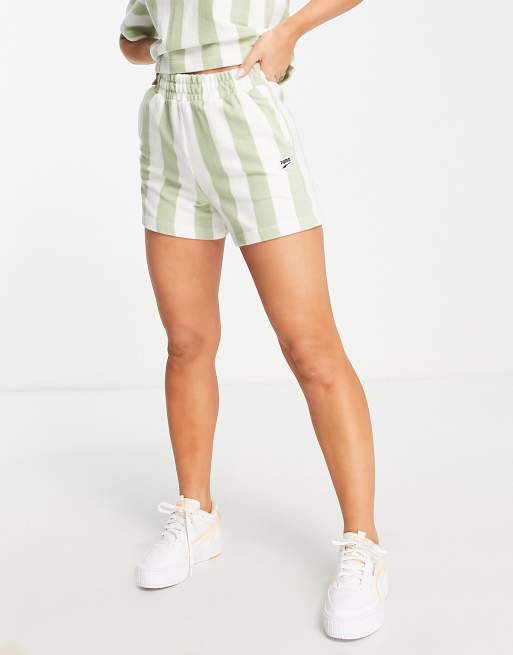PUMA Downtown – Szorty z materiału frotté w zielone paski – Tylko w ASOS