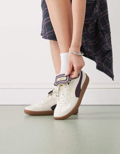 PUMA Palermo – Buty sportowe premium w kolorze złamanej bieli i śliwkowym