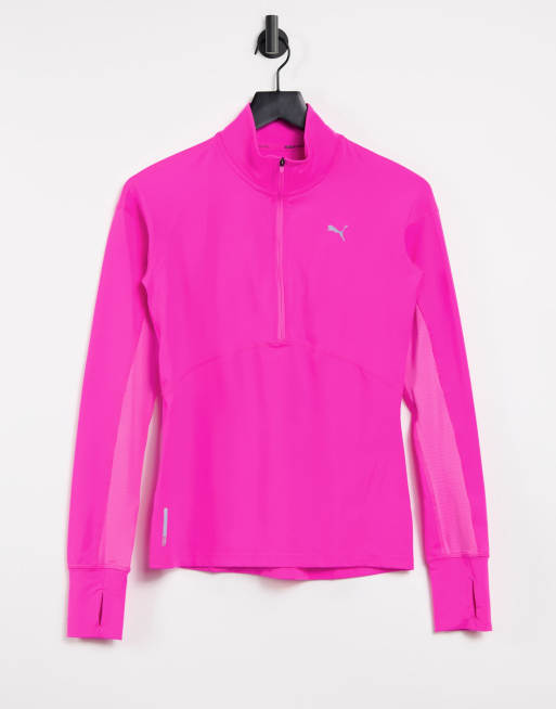 PUMA Running – Różowy neonowy top do biegania z suwakiem pod szyją i długimi rękawami