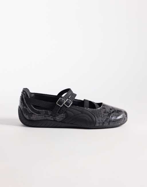 PUMA – Speedcat – Czarne balerinki ze wzorem skóry węża
