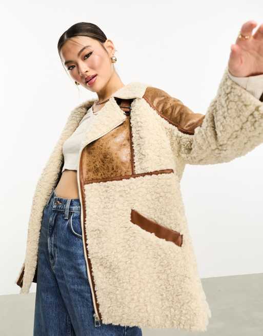 QED London – Camelowa kurtka aviator ze wstawkami z kontrastowym kożuszkiem