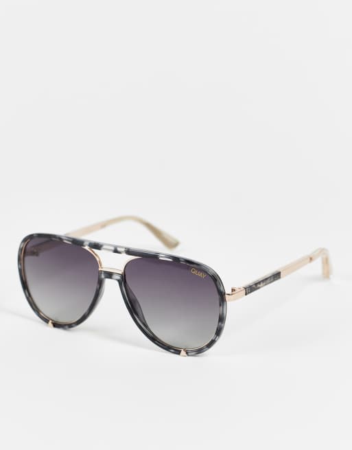 Quay – High Profile Luxe – Czarne szylkretowe okulary przeciwsłoneczne typu aviator ze szkłami z polaryzacją