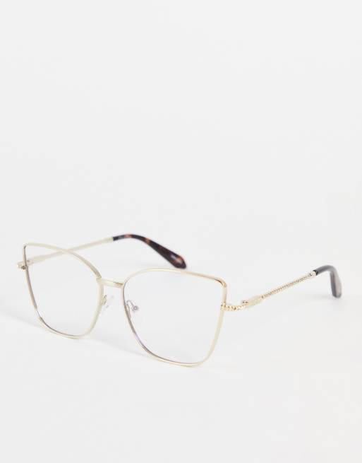 Quay – Speak Easy – Złote okulary typu kocie oczy blokujące niebieskie światło