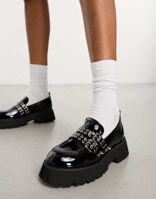 Loafersy – Mitali – Czarne loafersy na grubej podeszwie z metalowymi elementami