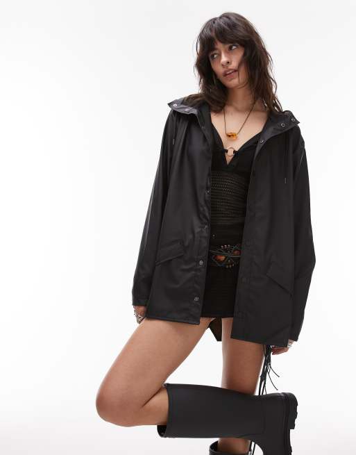 Rains – 18360 – Czarna transparentna wodoodporna kurtka o dłuższym fasonie