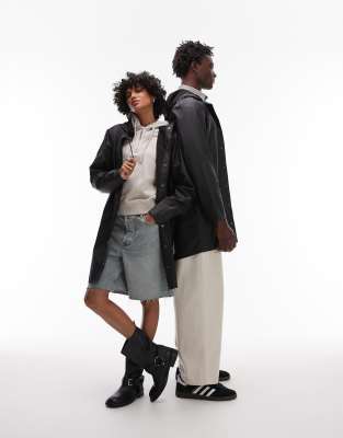Rains Unisex – 12020 – Czarna długa kurtka wodoodporna